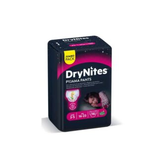 Huggies DryNites Pants Jumbo for Girls Product Detail In order to help control the bedwetting phase, DryNites® Pyjama Pants are specifically made to feel and look just like actual underwear. DryNites Pyjama Pants reduce the stress of mishaps so that kids can just be kids, whether they’re at home or on the go. The DryNites…