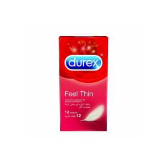 durex feel thin to reach the desired feeling , 12 condoms . Product Detail Durex Feel Thin condoms offer increased sensitivity compared to other standard condoms, increasing the feeling of closeness to your partner without be worried about the safety. This kind of condom provides perfect feeling during intimate relationship .