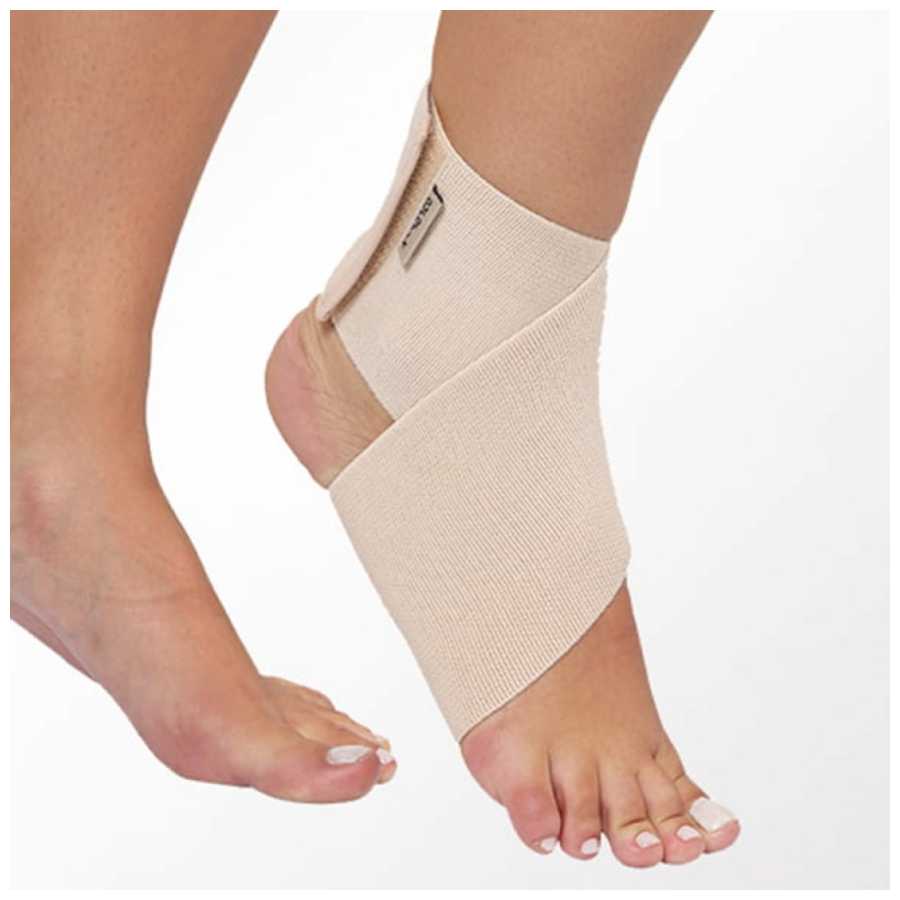 This ankle brace in the shape of an 8 is made of breathable and soft cotton. The bandage supports and stabilizes the ankle and may be used under shoes in everyday life or during sports.