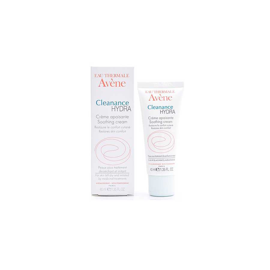 AVENE CLEANANCE HYDRA SOOTHING CREAM , Cream 40ml is a soothing, hydrating and nourishing care specific for dry and irritated skin by an anti-acne medication treatment. The Bisabolol calms redness,The Avene Thermal Water restores all its soothing and anti-irritants properties. Its hydrating and nourishing actives reconstitute the faded hydrolipidic film.This cream is a smooth cream, non-greasy, which spreads easily. Rapidly absorbed, it restores the cutaneous comfort and facilitate the following of medical treatments.