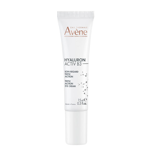 Everything accelerates with age. Aging cells spread and the skin functions at a slower rate. Avène dermatological laboratory developed Hyaluron Activ B3 eye cream, which contains dextran sulphate, pure hyaluronic acid (high and low molecular weight), and niacinamide (6%), to target the causes of aging and extend cell life*. Hyaluron Activ B3 Triple Action Eye Cream is an eco-friendly product that contains 93% natural, non-animal components. Its gel-cream texture delivers an immediate refreshing effect. The eye contour is firmer. Wrinkles, bags, and dark circles are minimized. This fragrance-free product is suitable for both the eye contour area, even sensitive ones, and the lip contour area. It also works well as a basis for makeup.