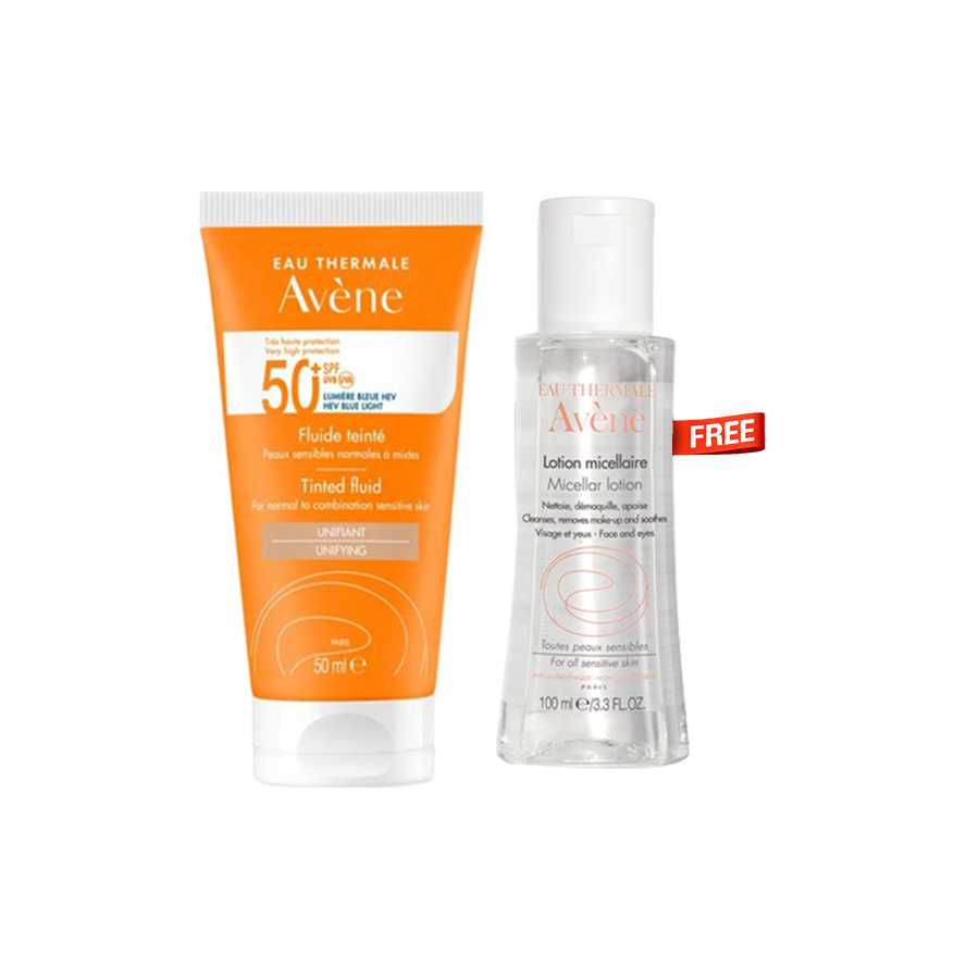 Avene Sunblock Tinted Fluid Spf50+ With Micellar Offer