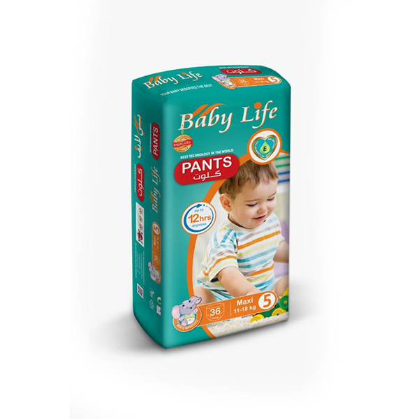 baby life diapers, highly absorbent pants, size 5, 11-18 kg baby , 36 pants