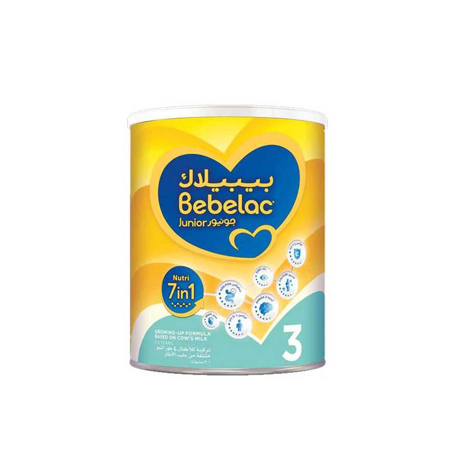 BEBELAC 3 900 G , It is suitable from 1 year onward, Bebelac Junior 3 with PreciNutri growing-up formula to support learning skills,to prepare him for school. It offers your toddler with the precise nutrition,tailored for each stage of his development.It provides with iron,omega 3 for brain development, prebiotics for a healthy gut flora,vitamin D and calcium for healthy bones.