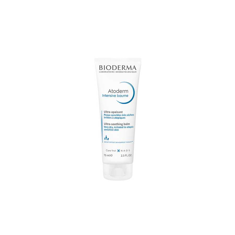 BIODERMA ATODERM INTENSIVE BAUME 75ML,Face and body moisturizer for infants, babies, teens and adults,Relieves itching and irritation,Biologically stren gthens the skin barrier,Restores skin comfort,Blocks penetration of allergens,Prevents water loss & inflammation