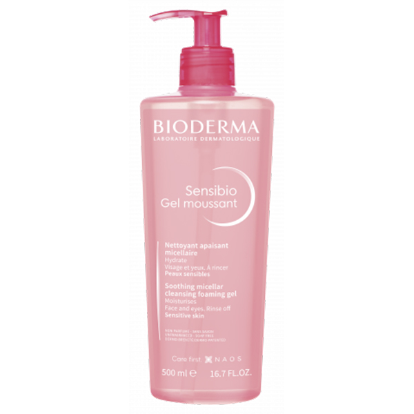 Bioderma Sensibio Cleansing Gel 500ml is a gentle foamy cleanser with hydrating and calming properties.