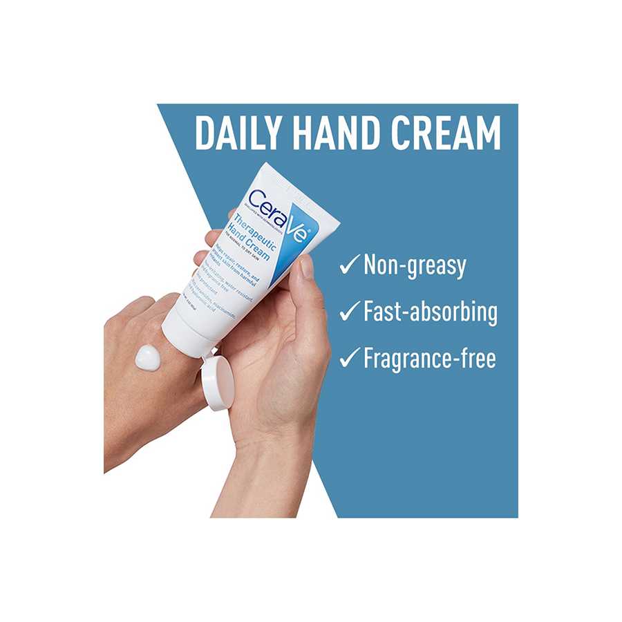 CeraVe Therapeutic Hand Cream moisturizes your hands, calms the skin and restores the skin’s natural barrier with a formula featuring hyaluronic acid, niacinamide and three essential ceramides. Our fragrance-free hand cream also contains dimethicone, a skin protectant, and its non-greasy, fast-absorbing formula helps restore and maintain smooth, soft skin.