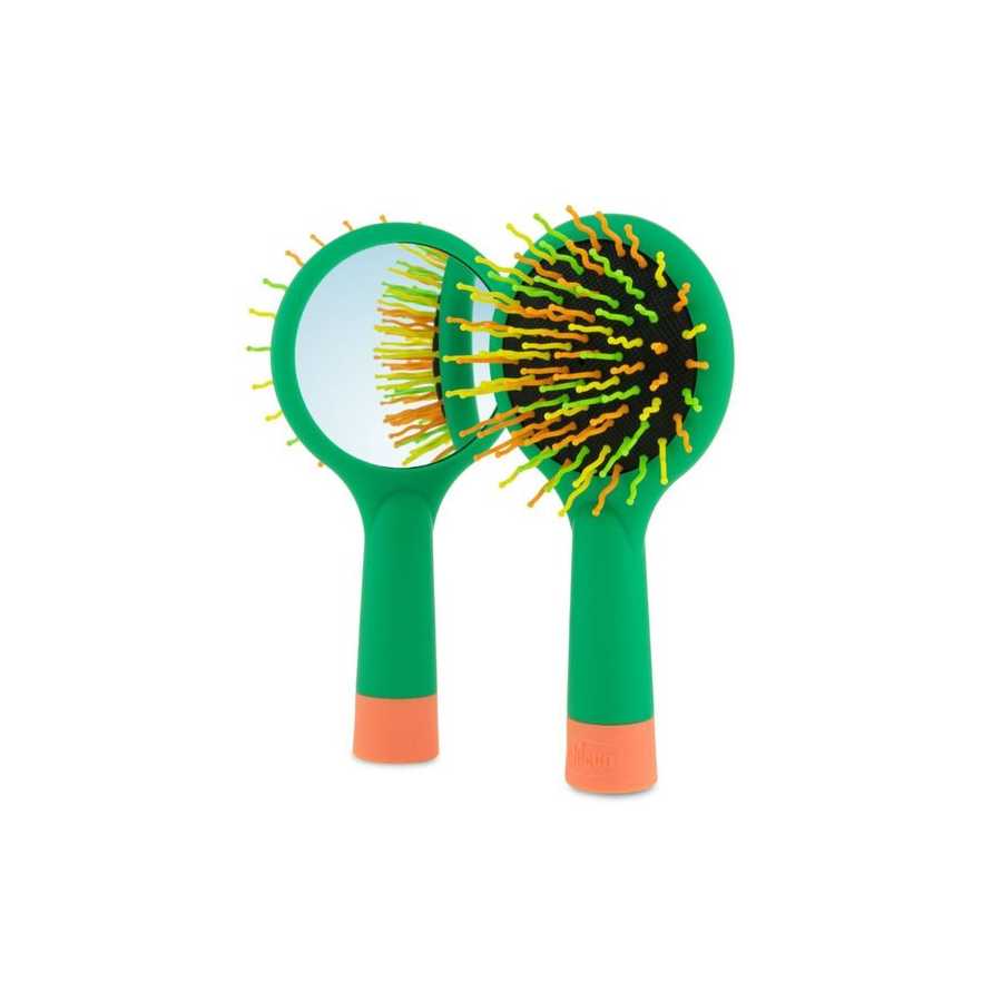 Baby hair may be effortlessly detangled with this multipurpose, multicolored brush that has wavy bristles.
