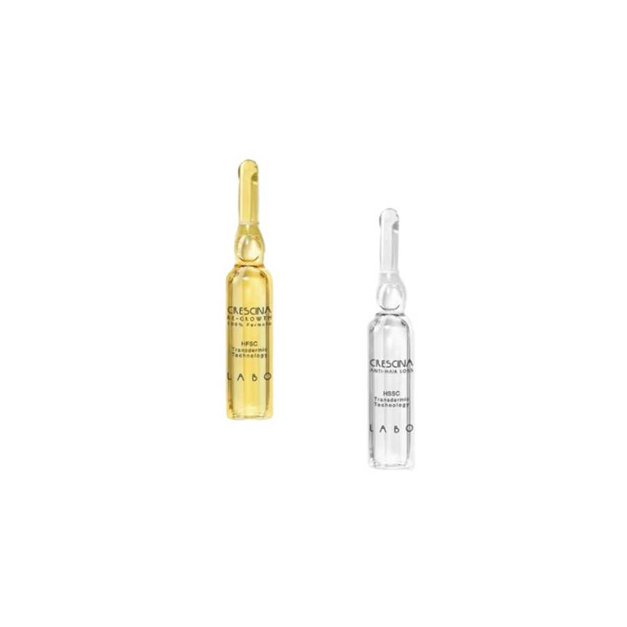Crescina Transdermic HFSC Complete Treatment concentrates in one single box Crescina Transdermic Re-Growth HFSC vials, to help counteract the hair thinning by supporting the hair bulb activities to promote the physiological hair growth, and Crescina Transdermic Anti-Hair Loss vials, to prevent the premature hair loss. Specific formulations for Man and for Woman, it is available in three different dosages to be chosen according to the stage of thinning.