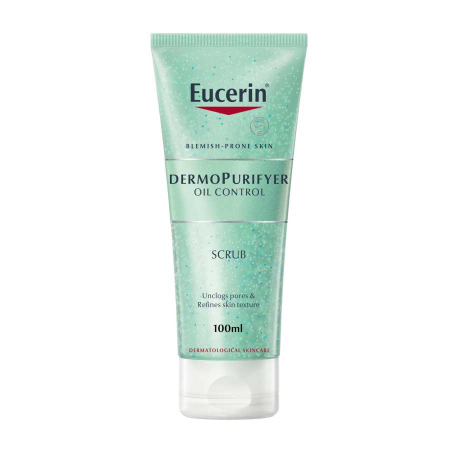 Eucerin DermoPurifyer Scrub is a lactic acid-based oil-free skin peel that eliminates impurities without drying out the skin. The exfoliating activity of natural micro particles acts against dead skin cells, which is one of the main causes of blackheads and spots, and gently washes skin and removes make-up.