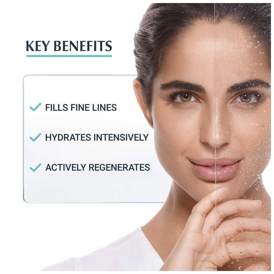 Two different forms of hyaluronic acid are included in the Eucerin Hyaluron-Filler Night Cream formula to target and treat all wrinkle types, and bioactive glycine-saponin is also included to actively boost the skin’s natural hyaluronic acid production. Concentrated Dexpanthenol helps the skin regenerate over night. Skin feels supple and well-kept.