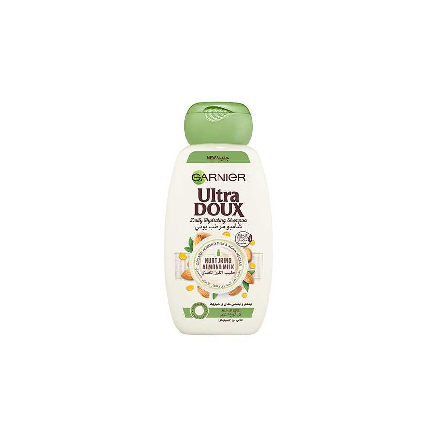 Garnier Ultra Doux Nurturing Almond Milk Shampoo associates Organic Almond Milk; a true nutritive treasure to hydrate the hair. Suitable for all hair types.