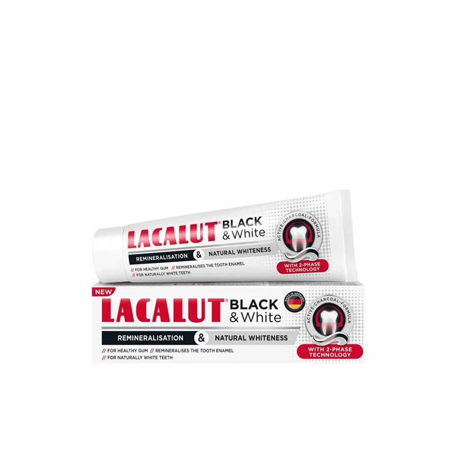 Lacalut Black & White Remineralization & Natural Whiteness toothpaste features an active charcoal-containing formula that helps restore the natural whiteness of teeth and ensures thorough cleaning.