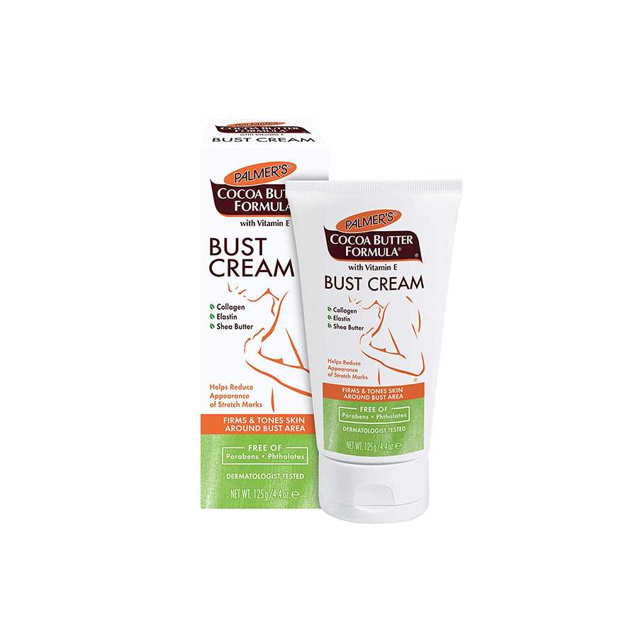 Palmer’s Cocoa Butter Formula Bust Cream is a specially formulated cream that smoothes on like a gel. It will firm and tone your bust area even after pregnancy and weight loss. Made with a unique blend of pure Cocoa Butter, Shea Butter and Vitamin E, to maximize your skin’s moisturization, while Collagen, Elastin and other proven ingredients help support the skin around the bust area and increase tone and firmness.