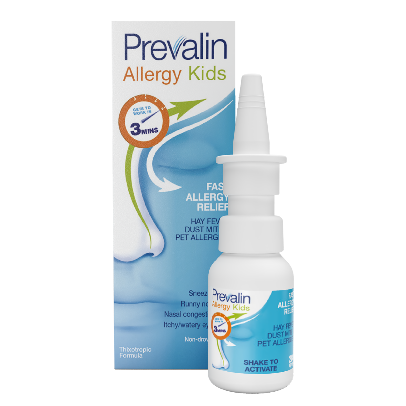 Before using Prevalin™ Allergy Kids, shake the bottle vigorously in upright position at least 4 times.