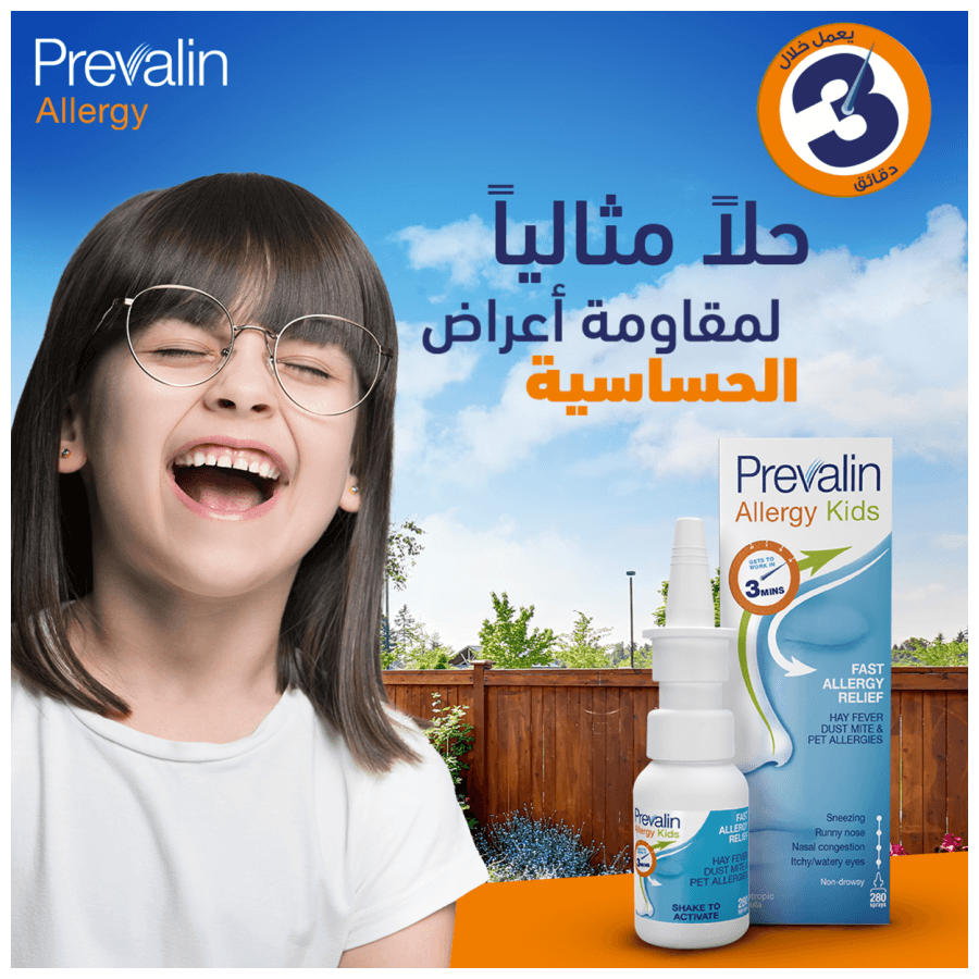 Apply 1 to 2 sprays into each nostril, 2 to 3 times a day (works up to 6 hours). Prevalin™ Allergy Kids is suitable for children between 6 and 12 years of age. Prevalin™ Allergy Kids should only be used under adult supervision. Always blow nose thoroughly before each application.