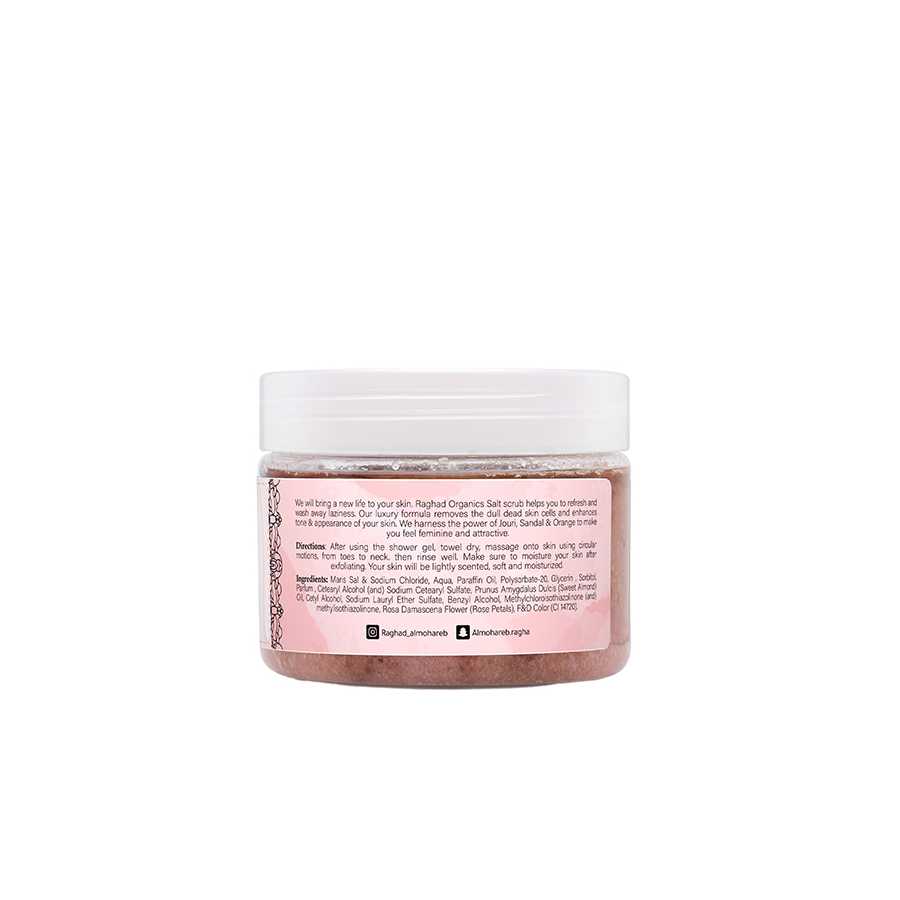 Apply a generous amount of Raghad La Dentelle Body Scrub on the body after showering in a circular motion and rinse with water.