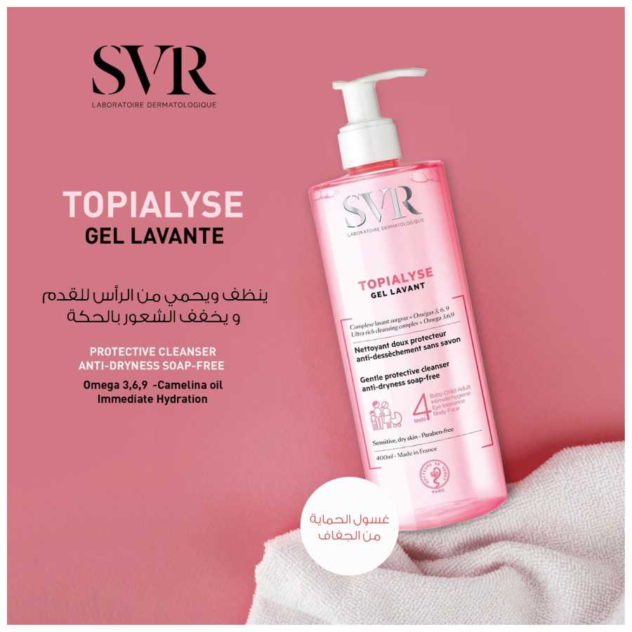 TOPIALYSE Gel Lavant gently cleanses and protects skin against drying factors. Its soothing, 24-hour moisturising formula reduces itching and softens skin for immediate and long-lasting comfort.