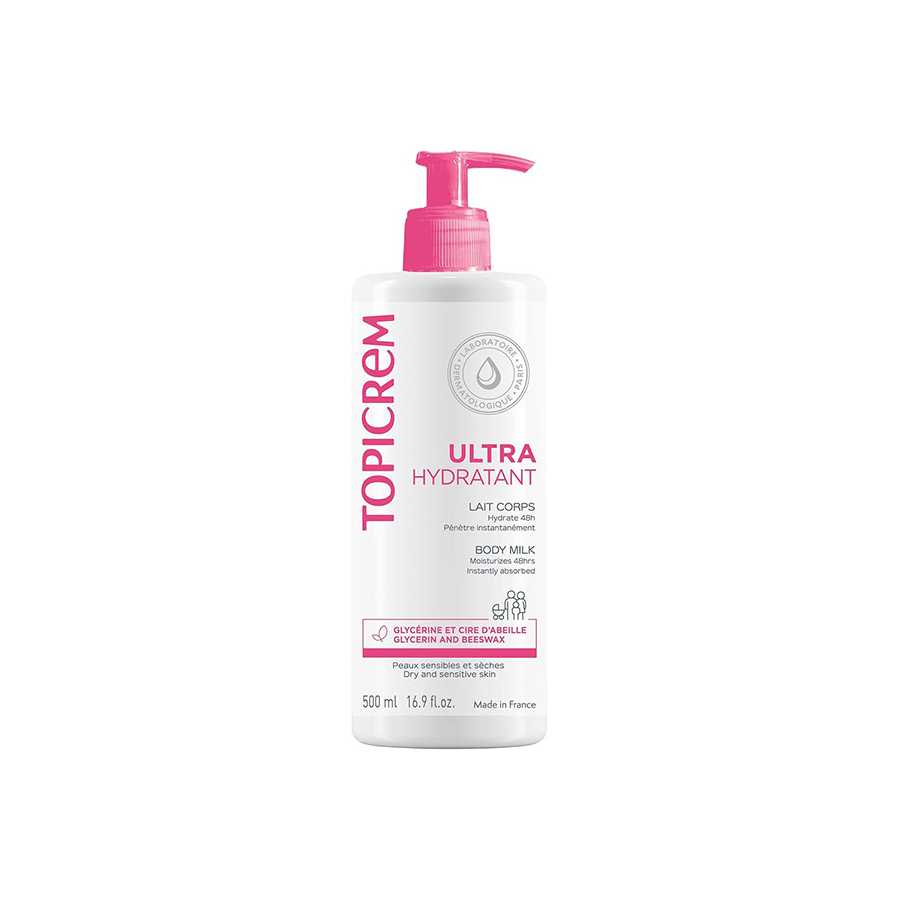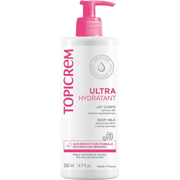 topicrem ultra-moisturizing body milk emulsion which moisturizes dry and sensitive skins for 48h.