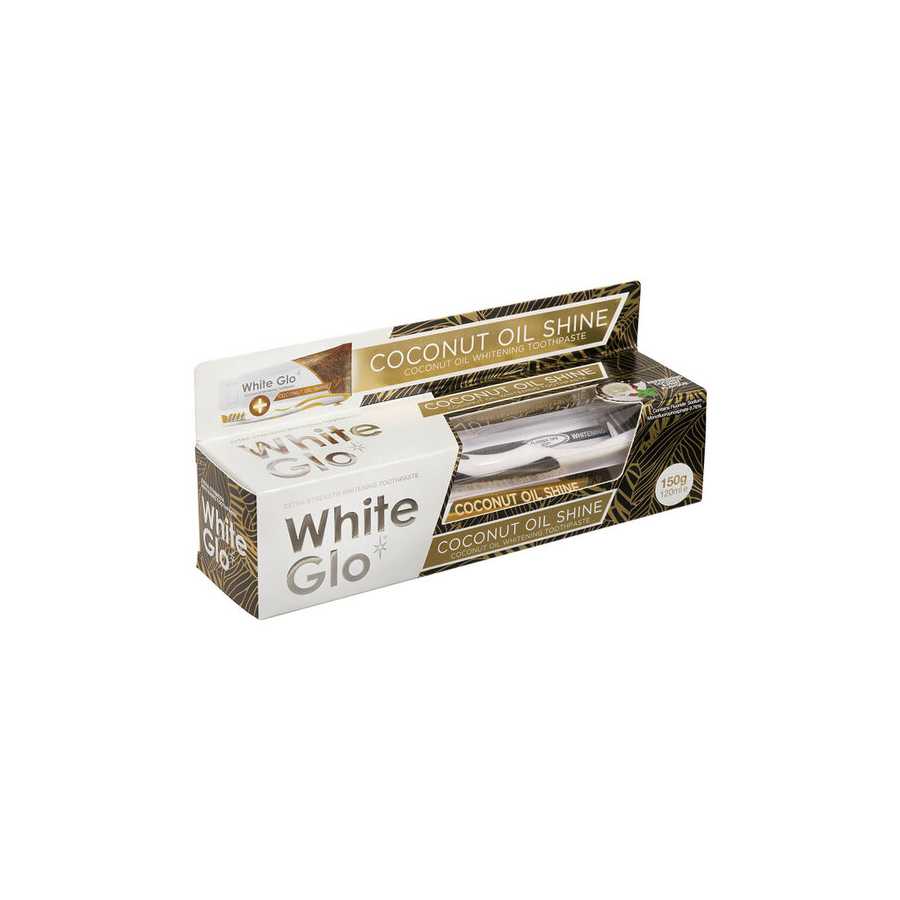 Toothpaste White Glo Coconut Oil Whitening. Natural coconut oil and additional strong whitening qualities are added.This delectable toothpaste will transport you to a tropical vacation.