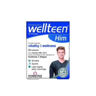 Provides a broad range of important vitamins & minerals for reduction of tiredness and fatigue Product Detail Wellteen Him delivers a broad range of necessary vitamins and minerals for increasingly hectic lifestyles, from studies to sports. 24 nutrients specifically designed for males aged 13 to 19 to help preserve vitality and wellness. Vitamins B6 and…